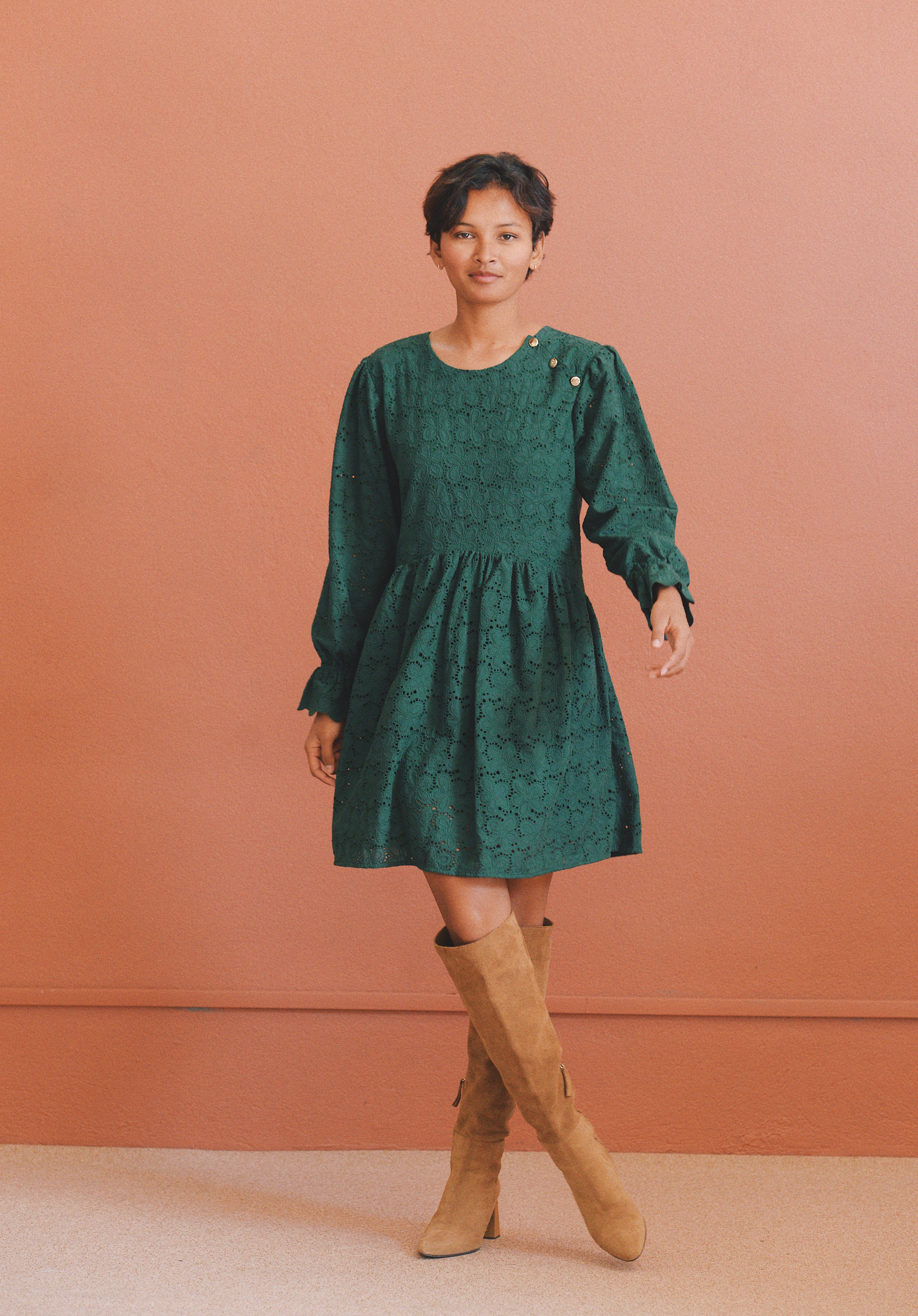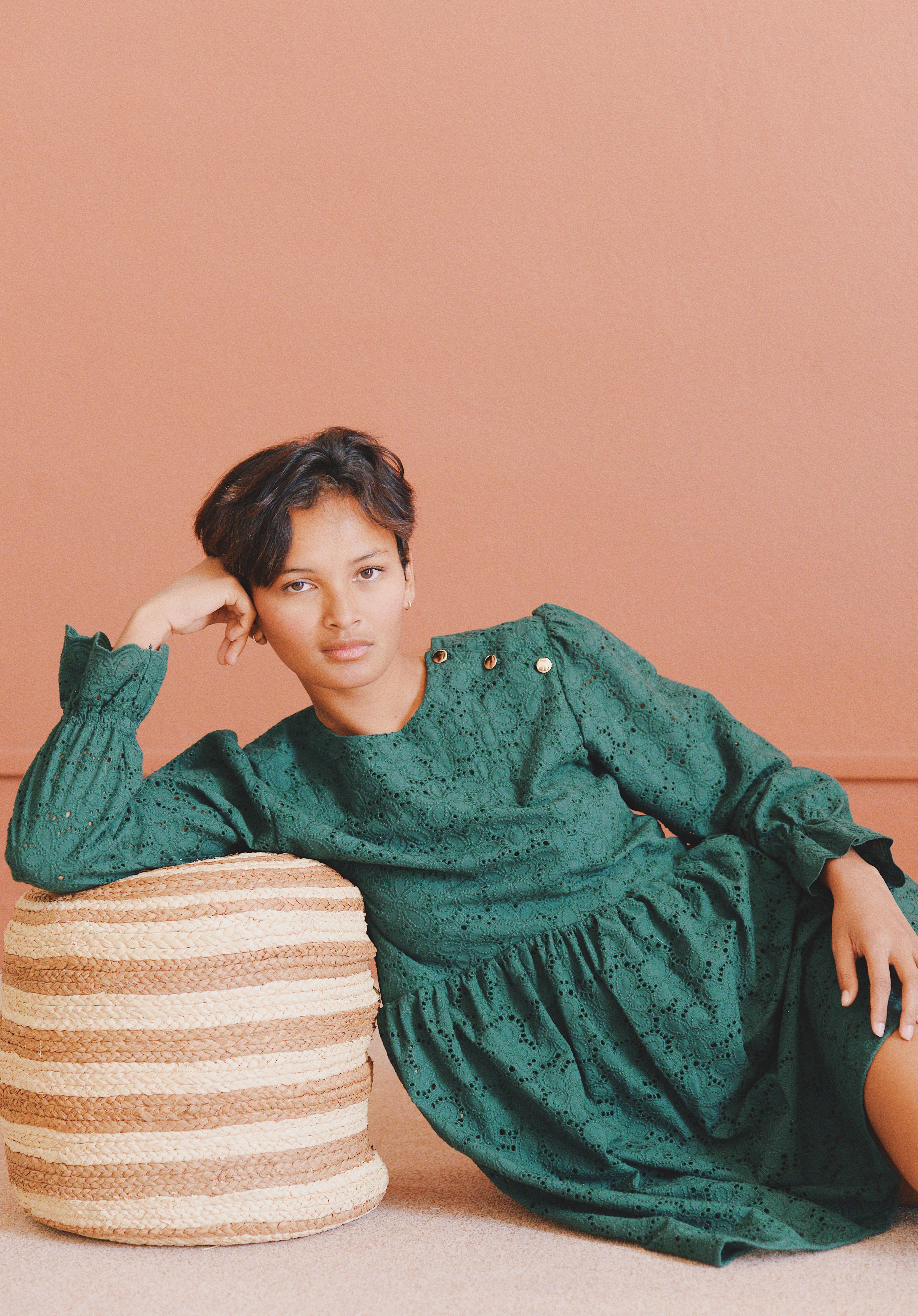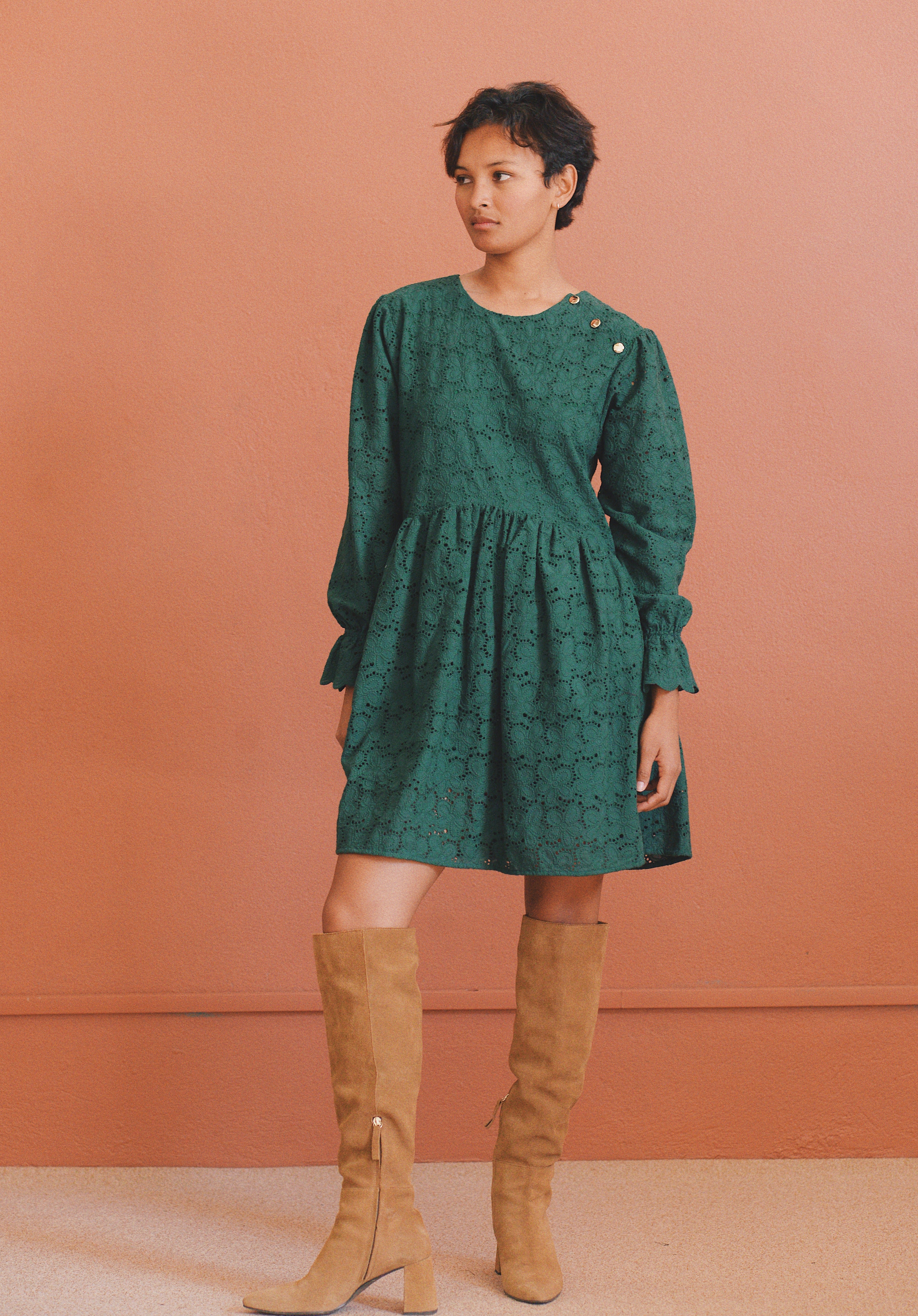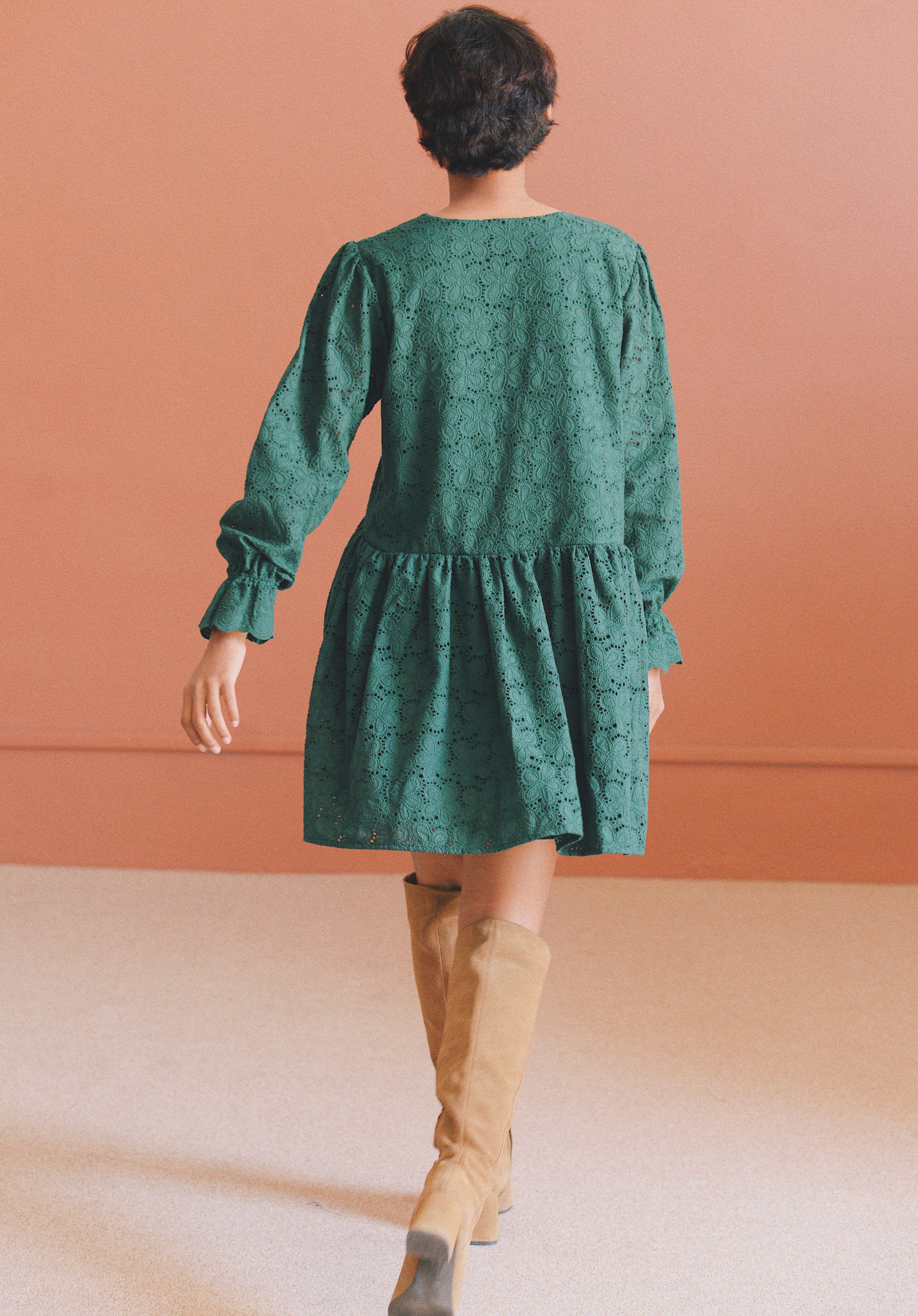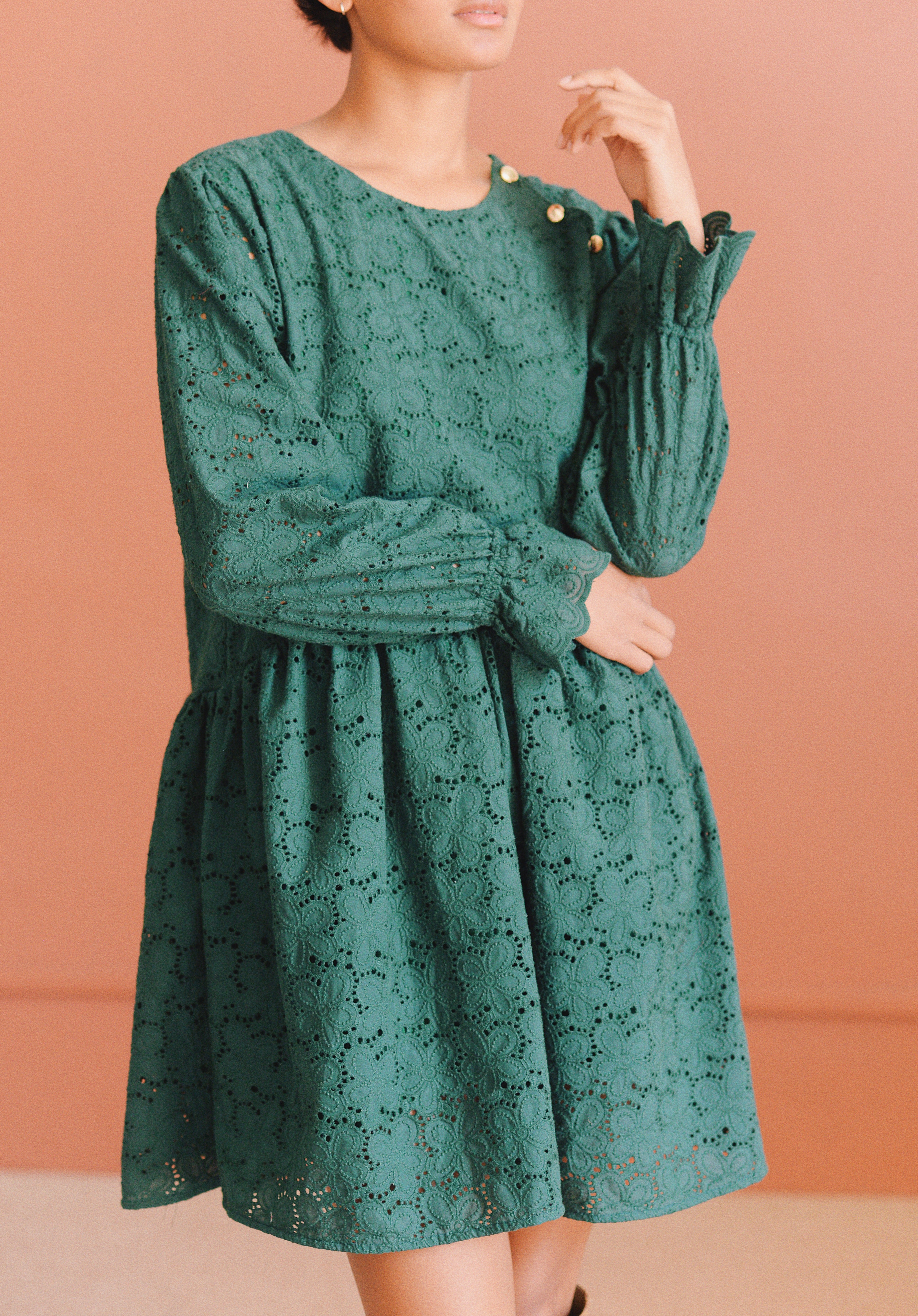 - Robe verte à broderie anglaise