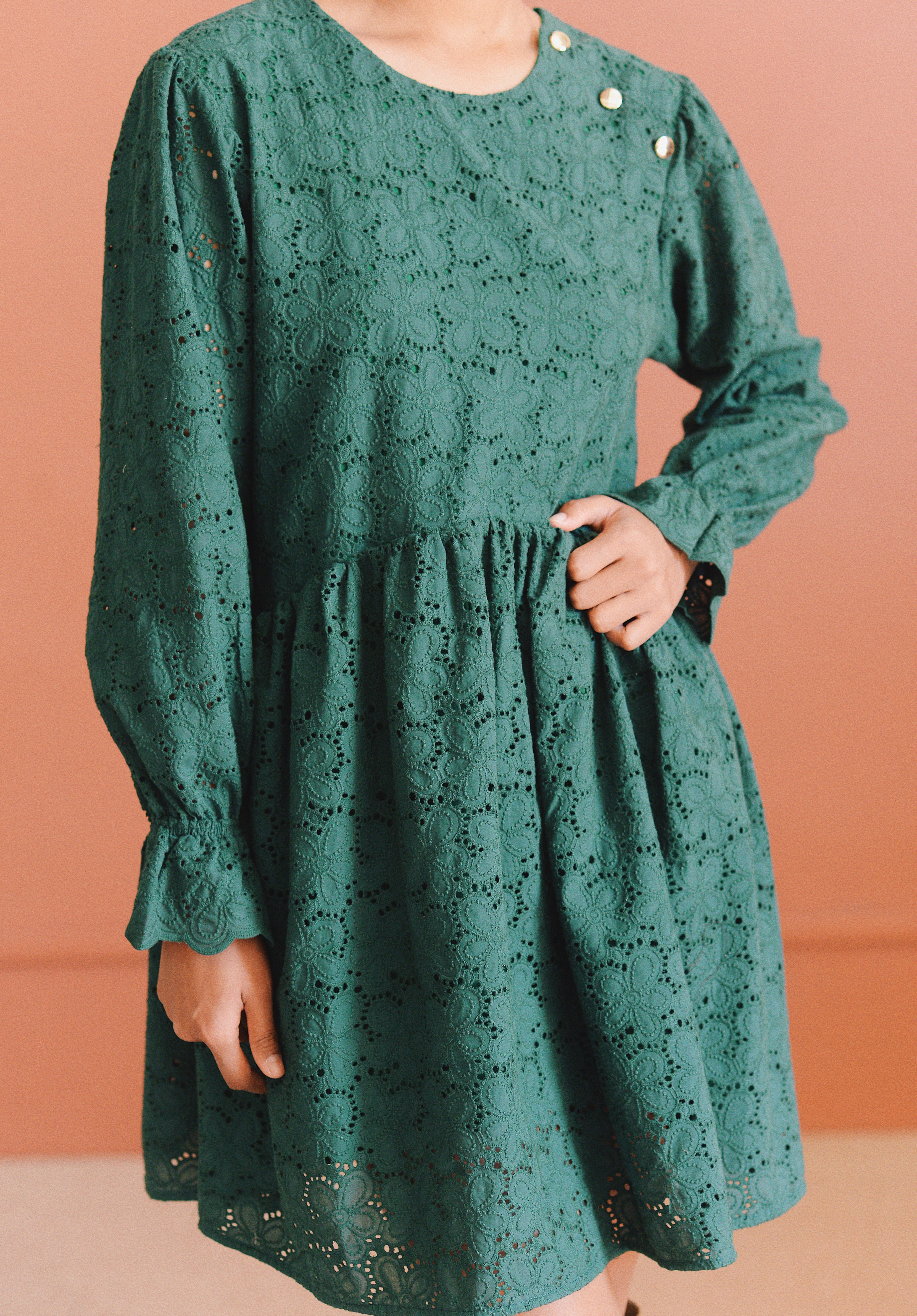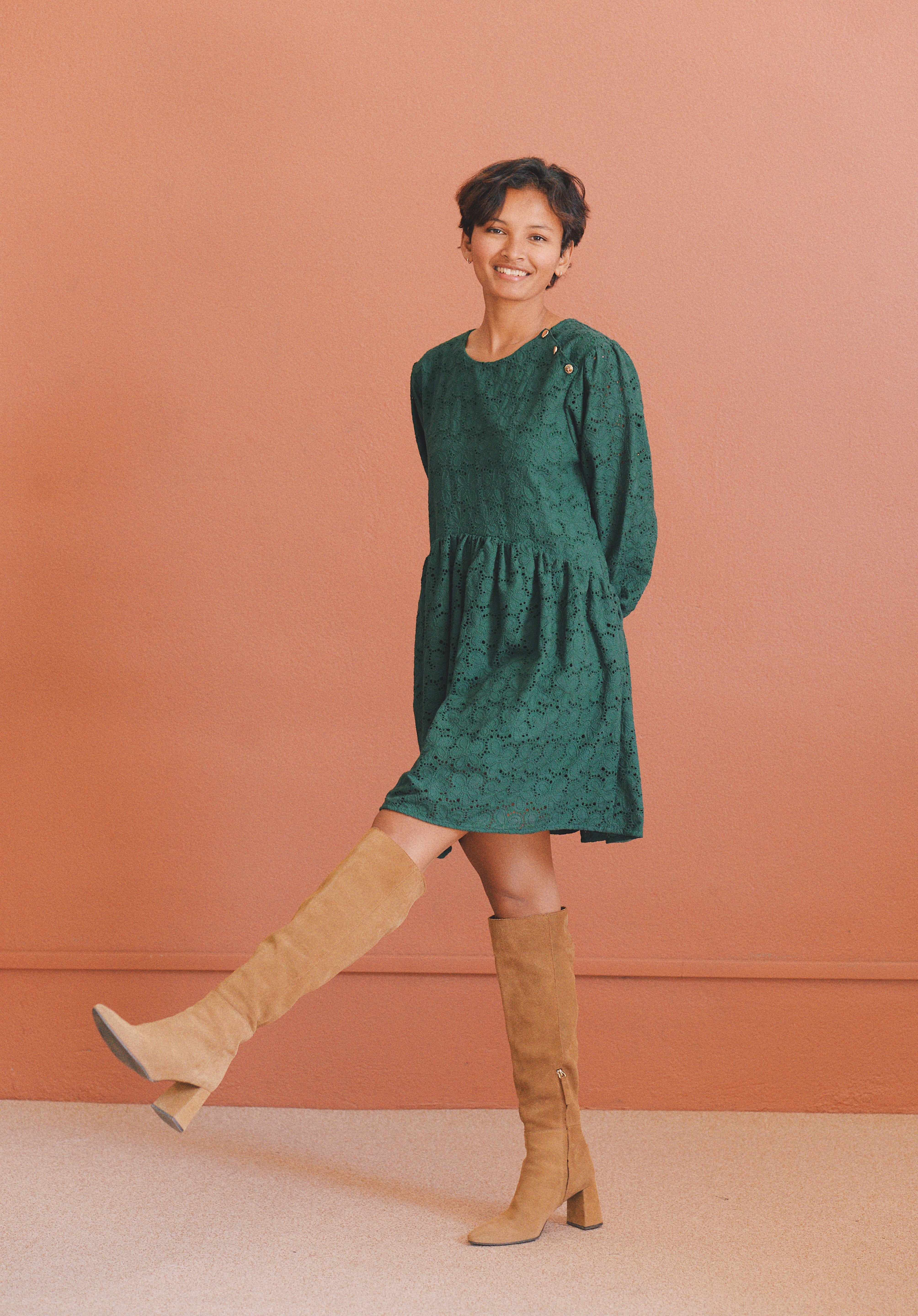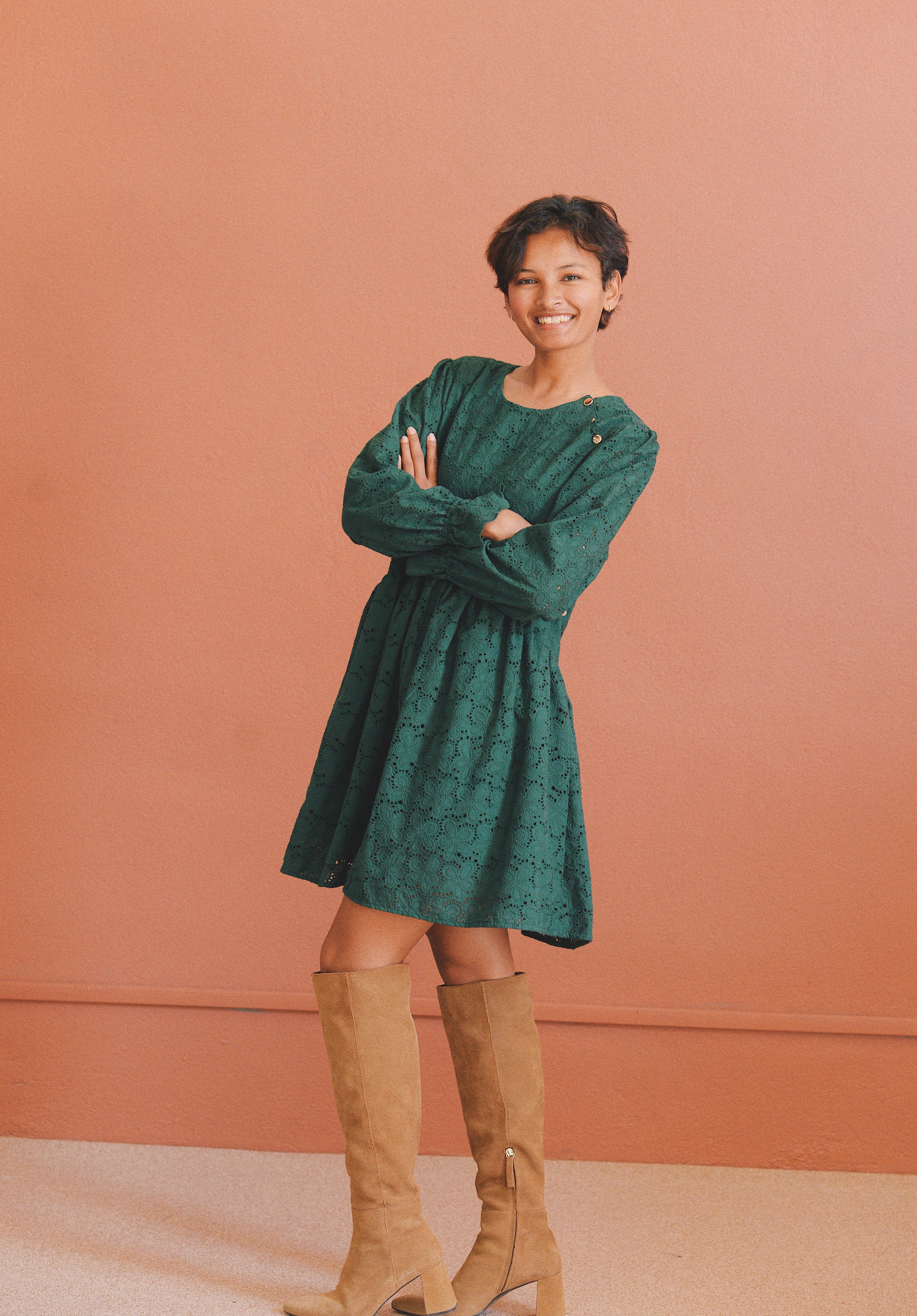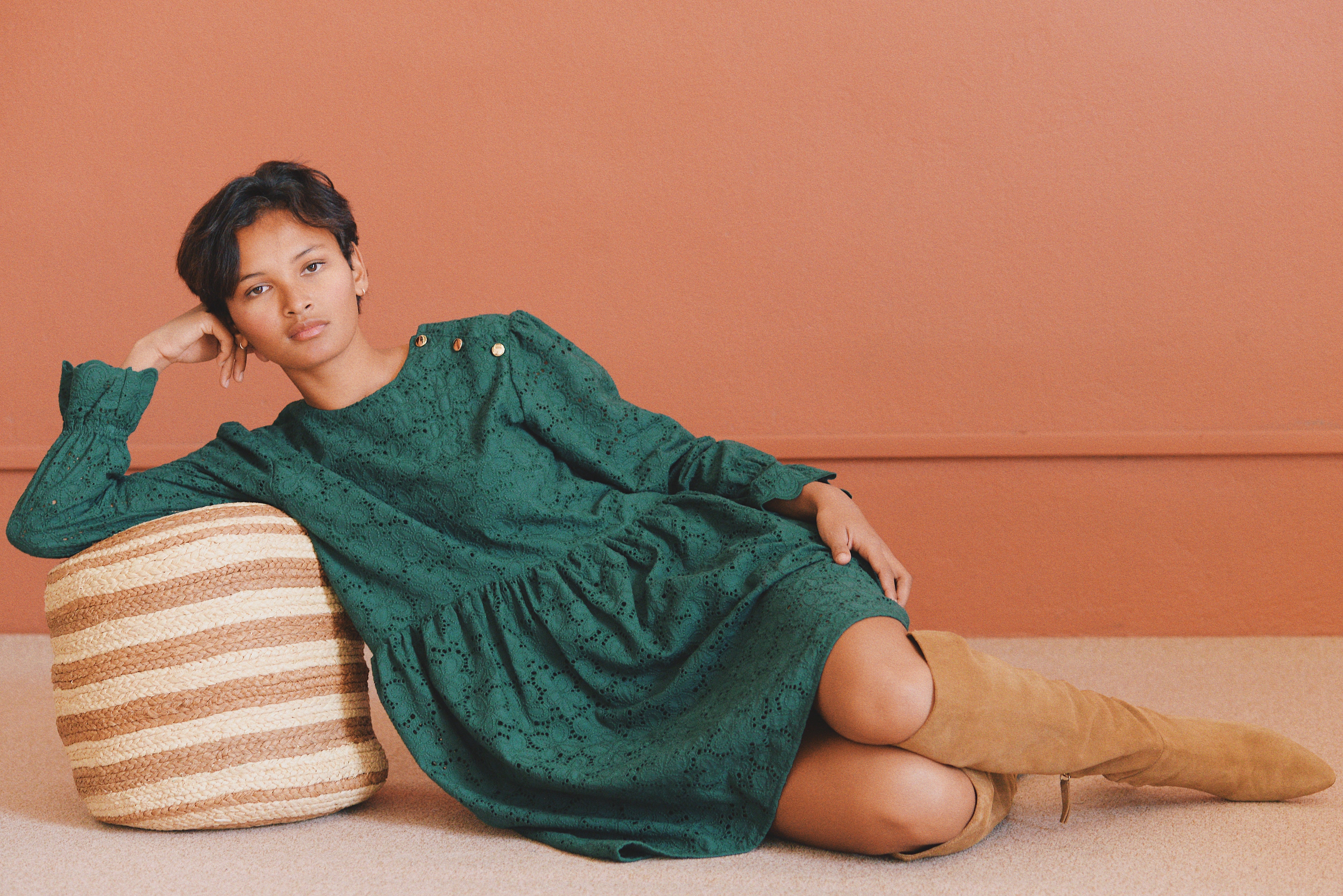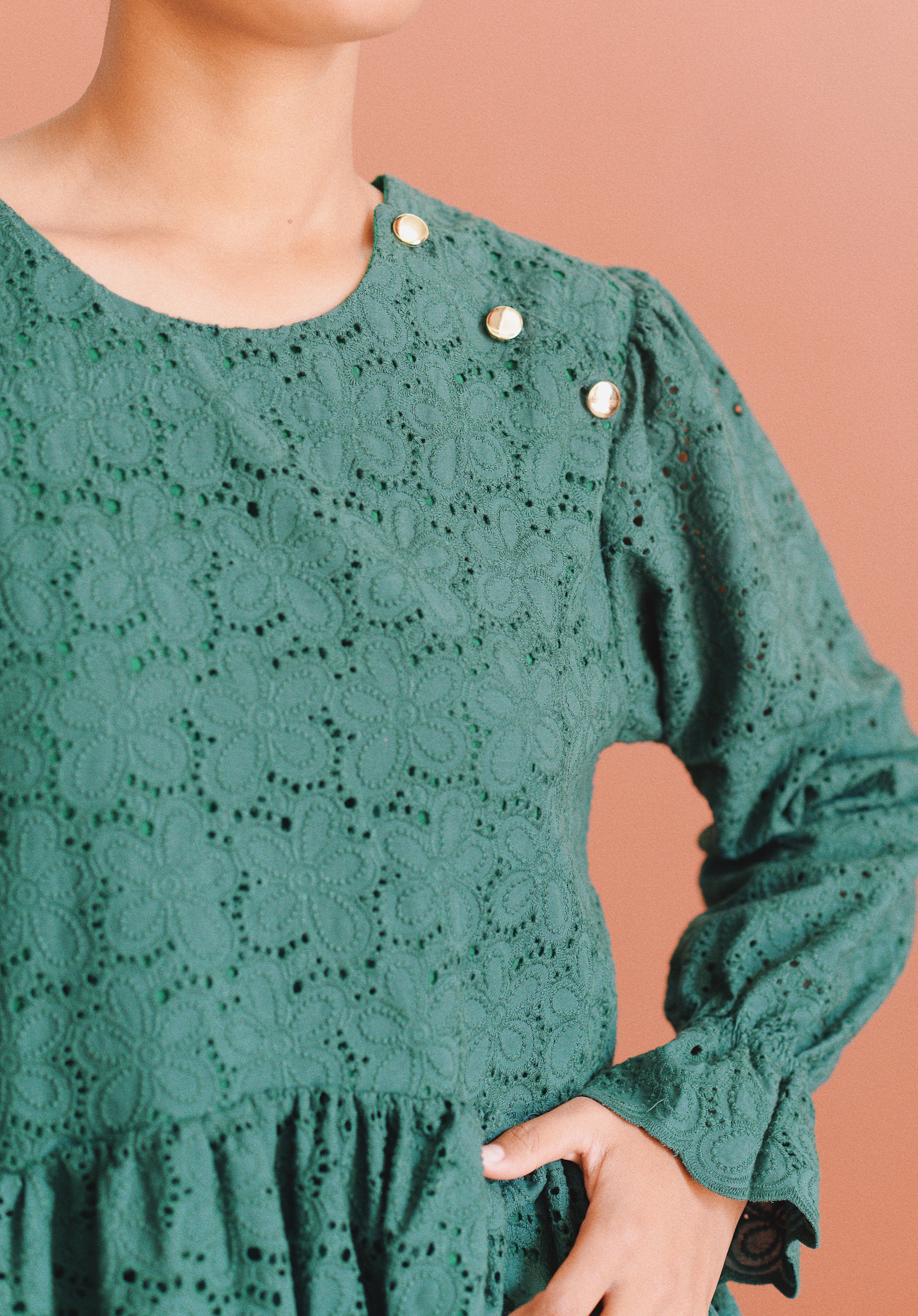 - Robe verte à broderie anglaise