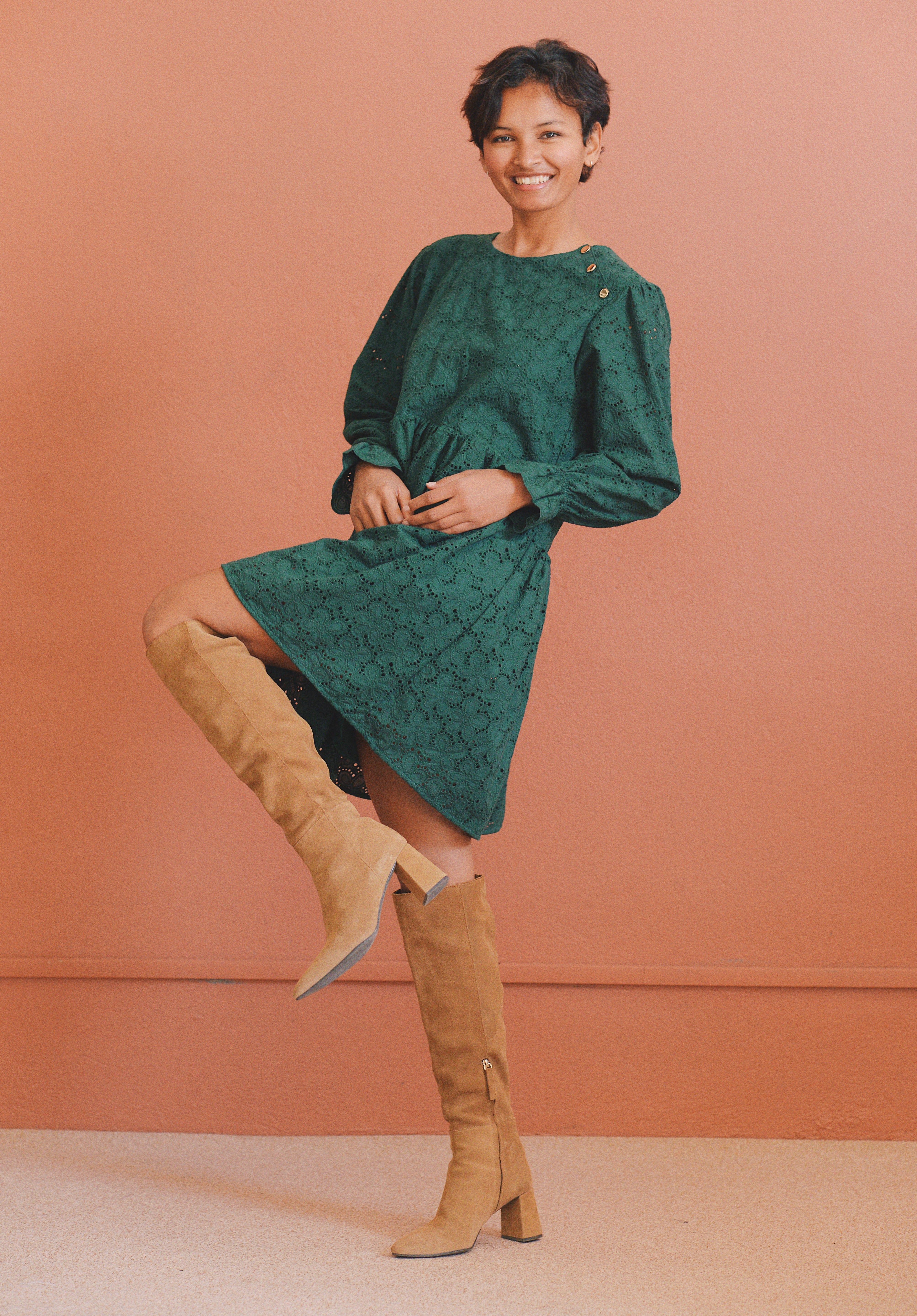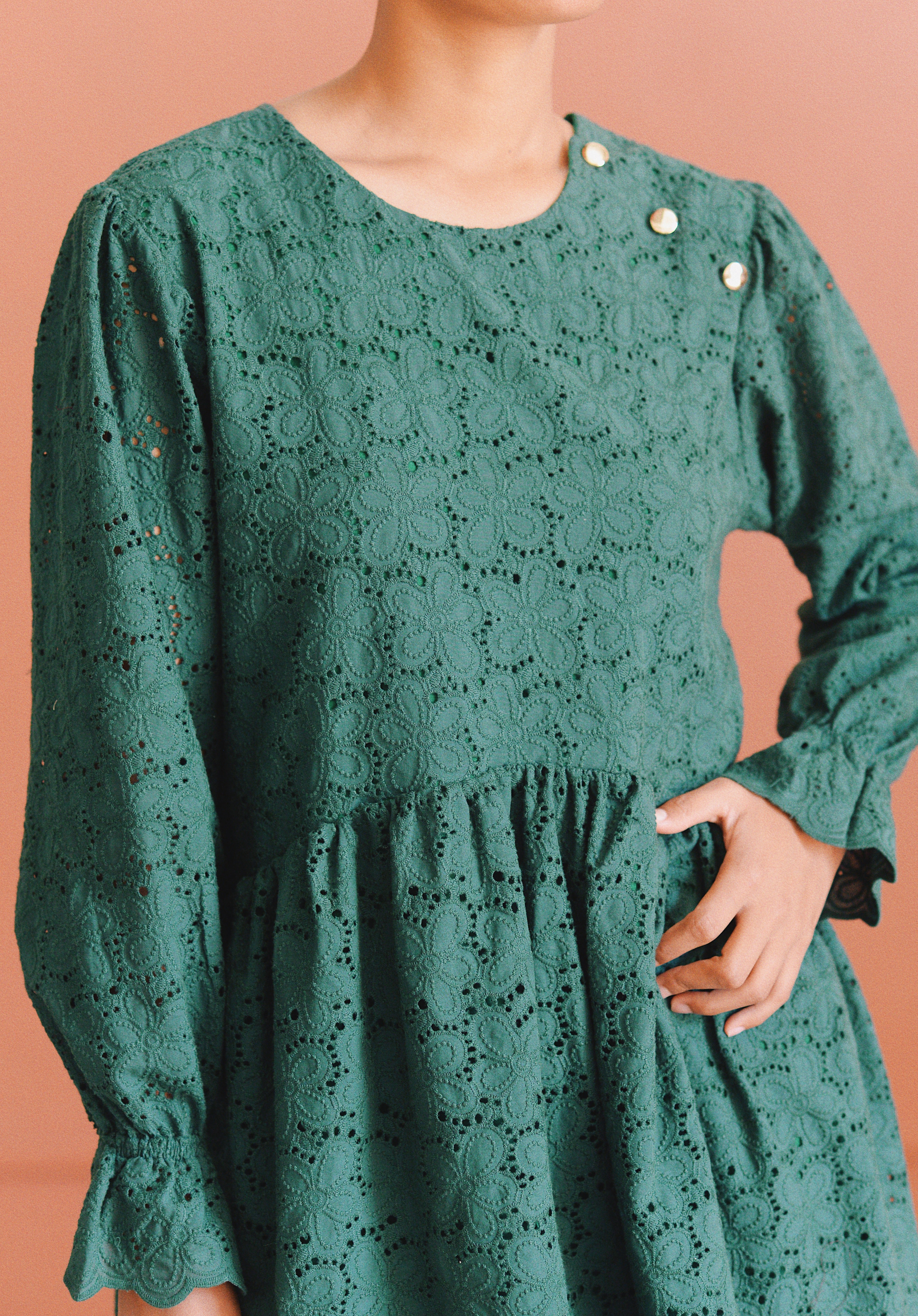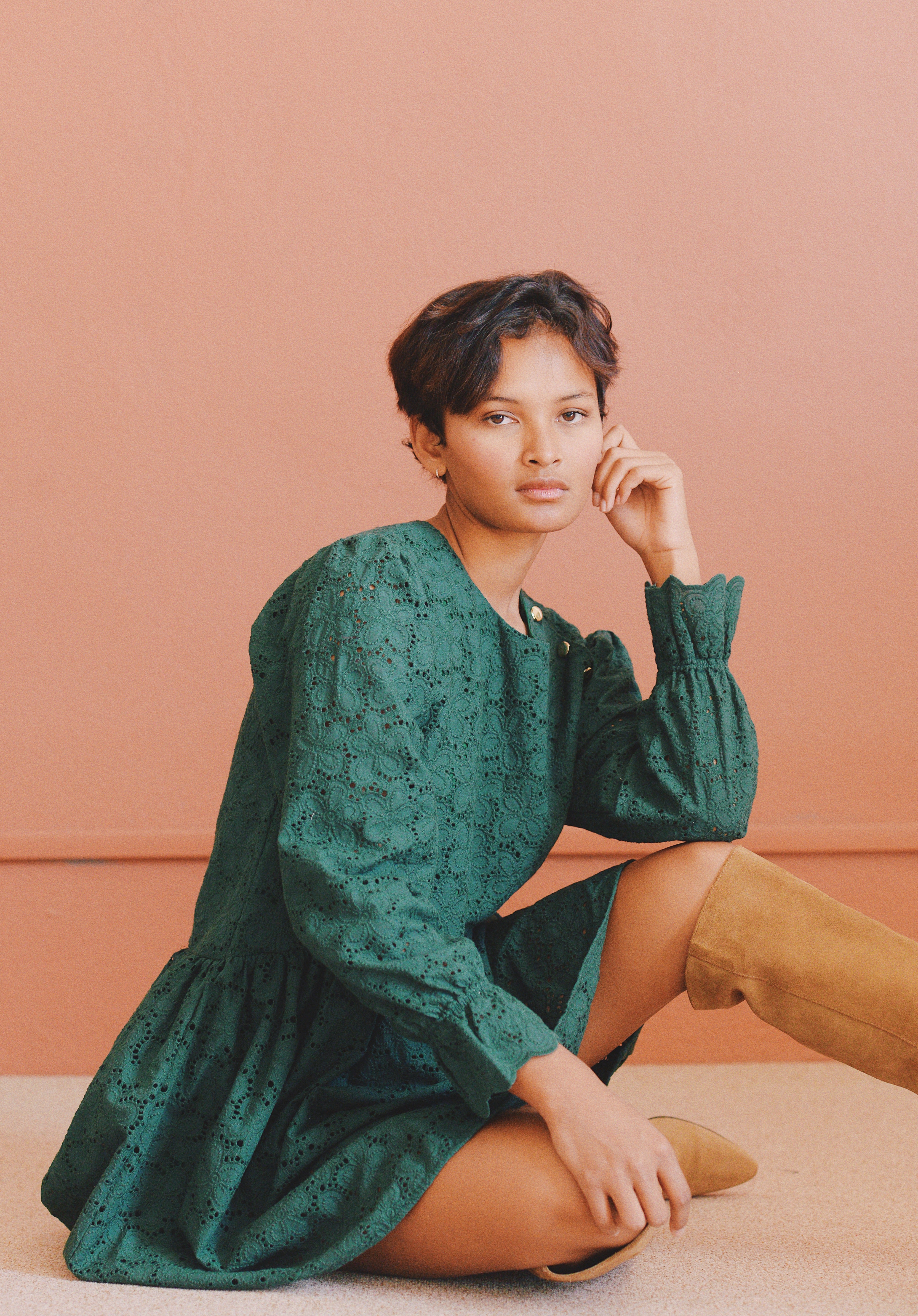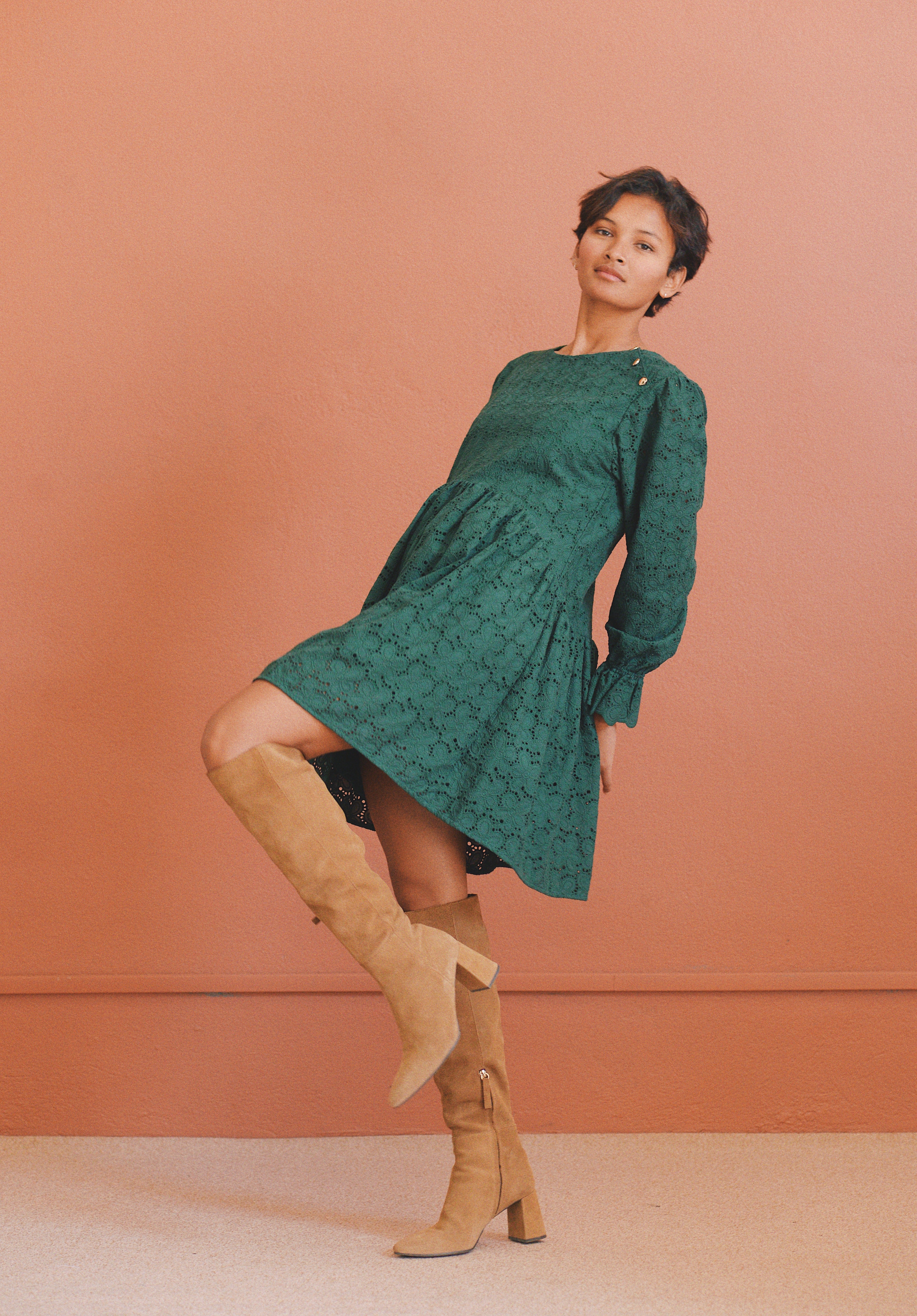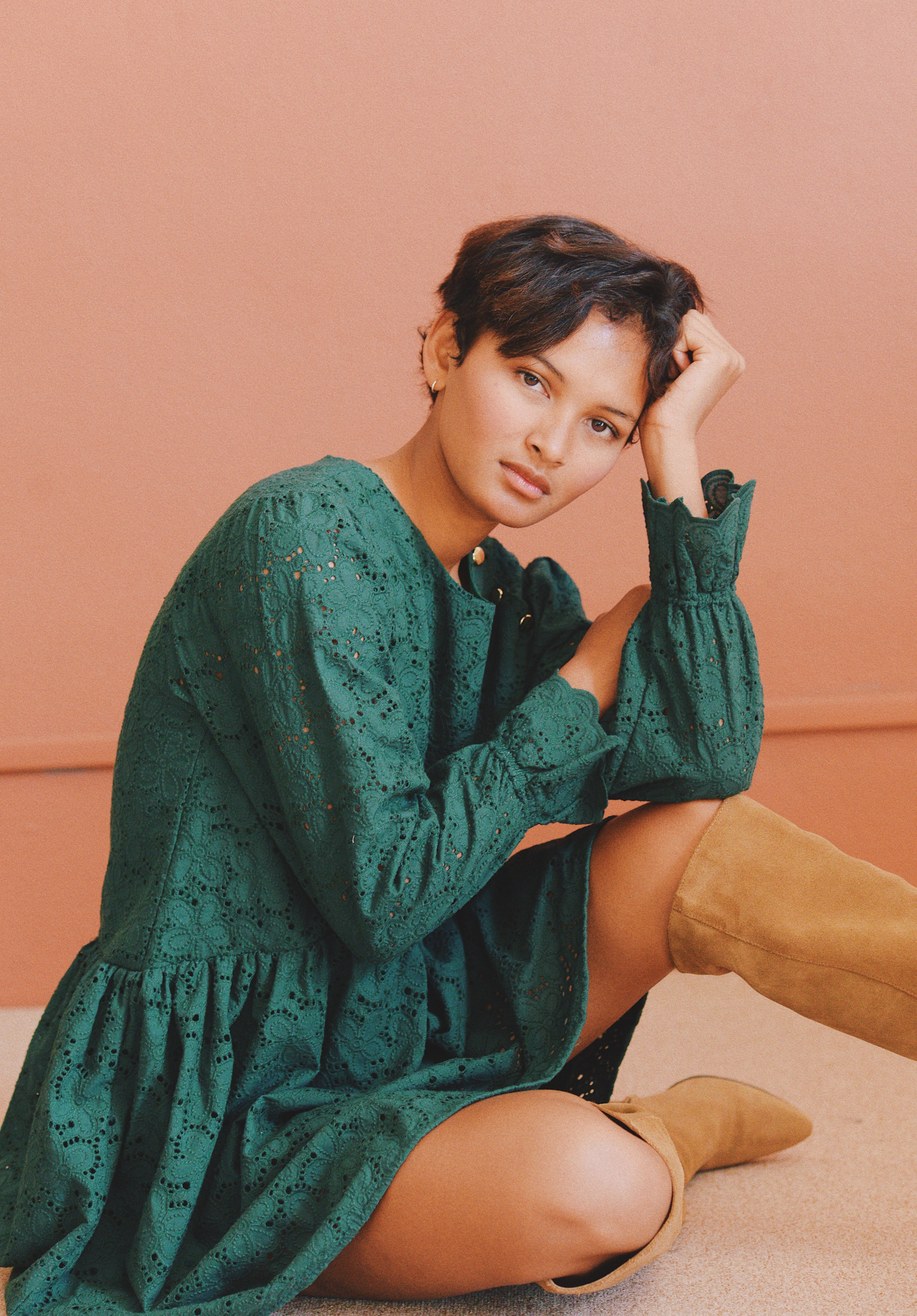 - Robe verte à broderie anglaise