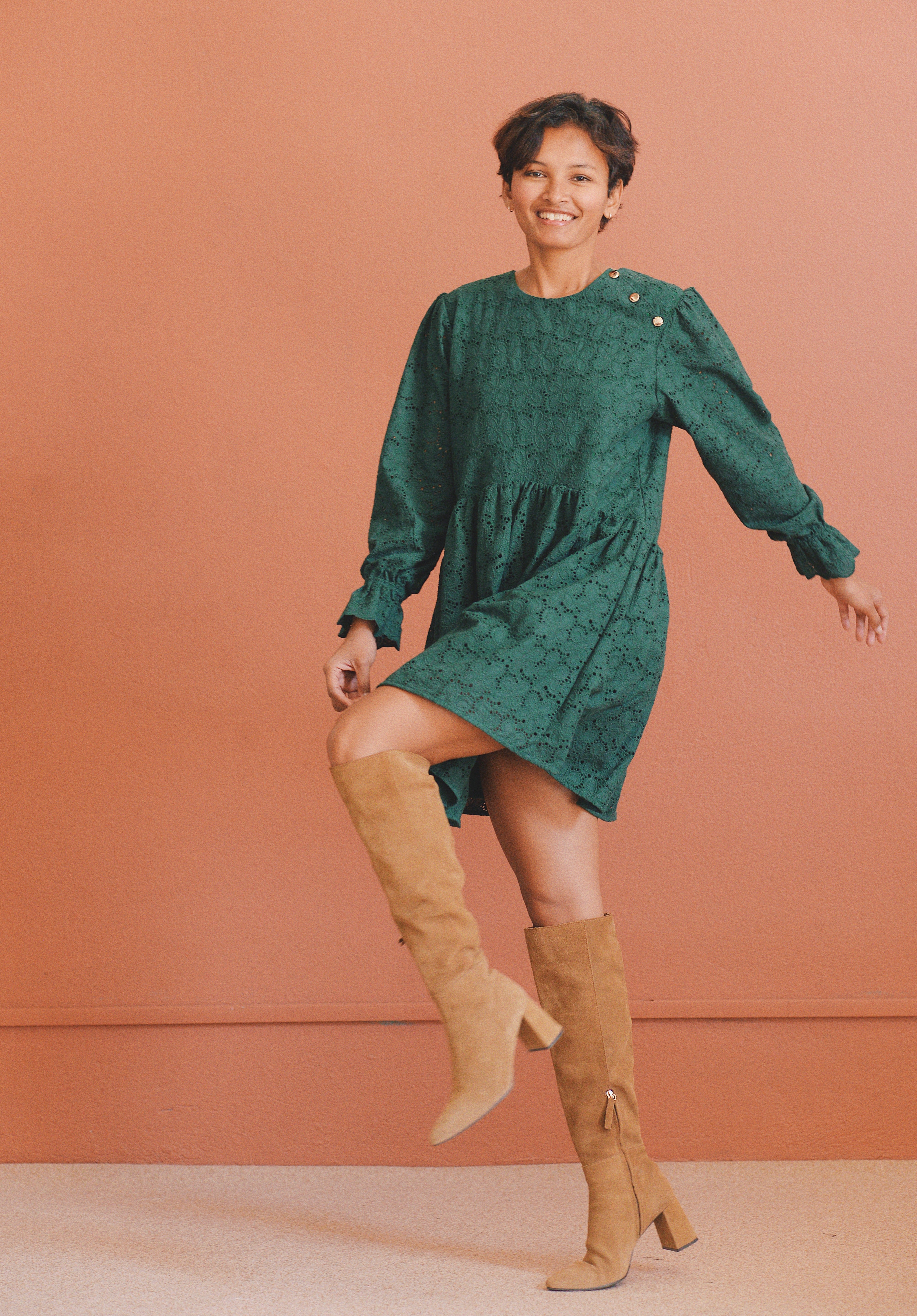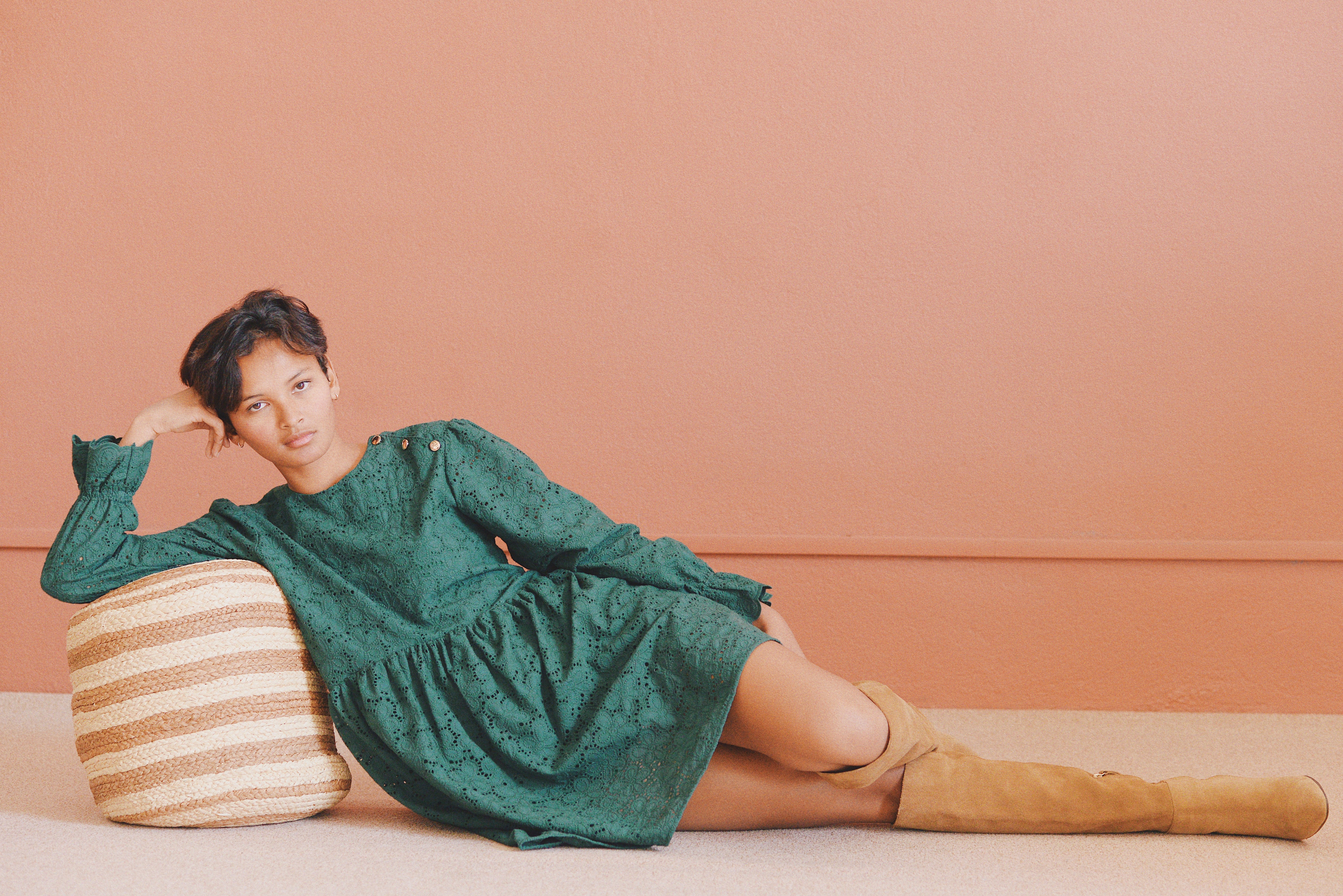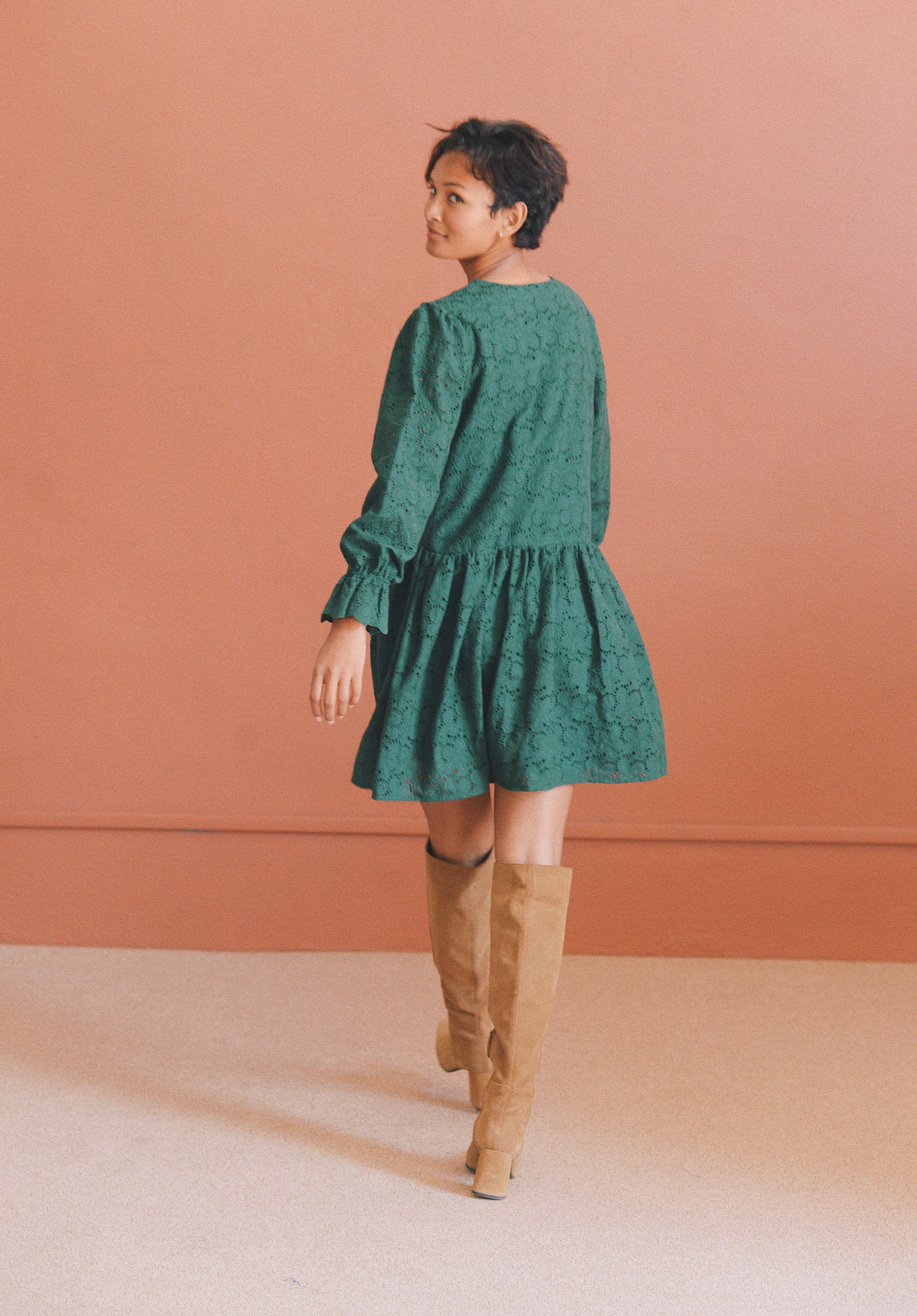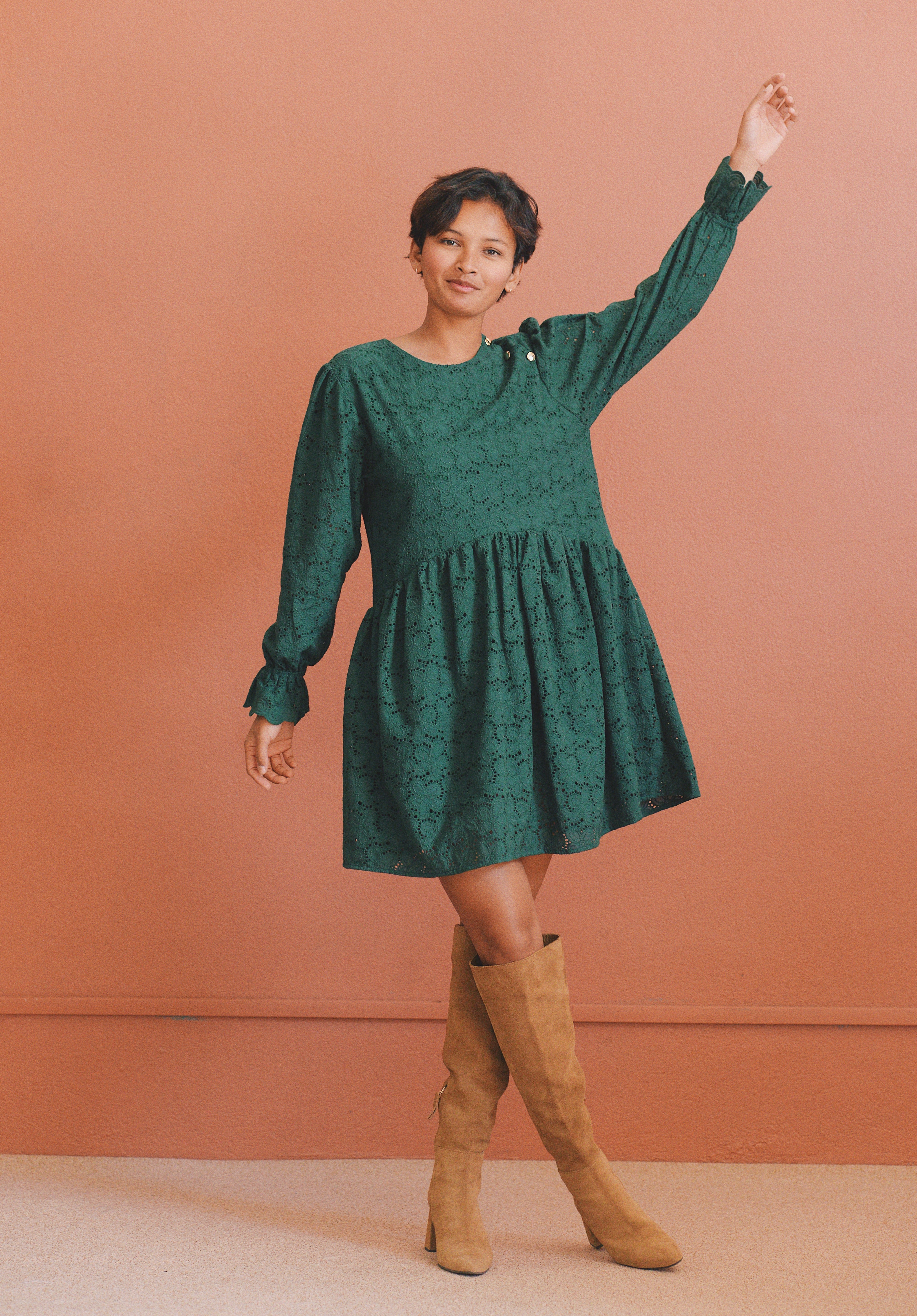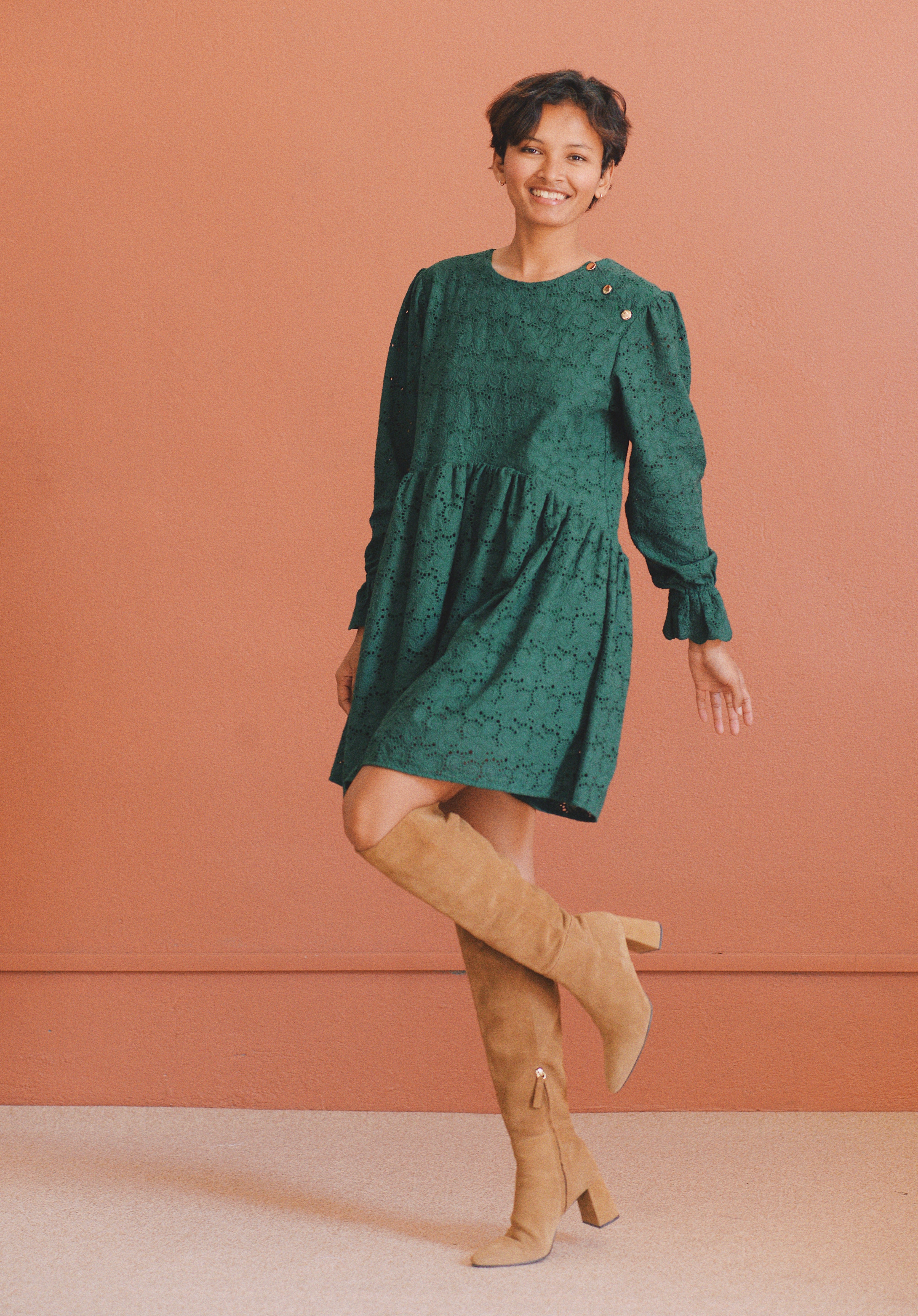 - Robe verte à broderie anglaise