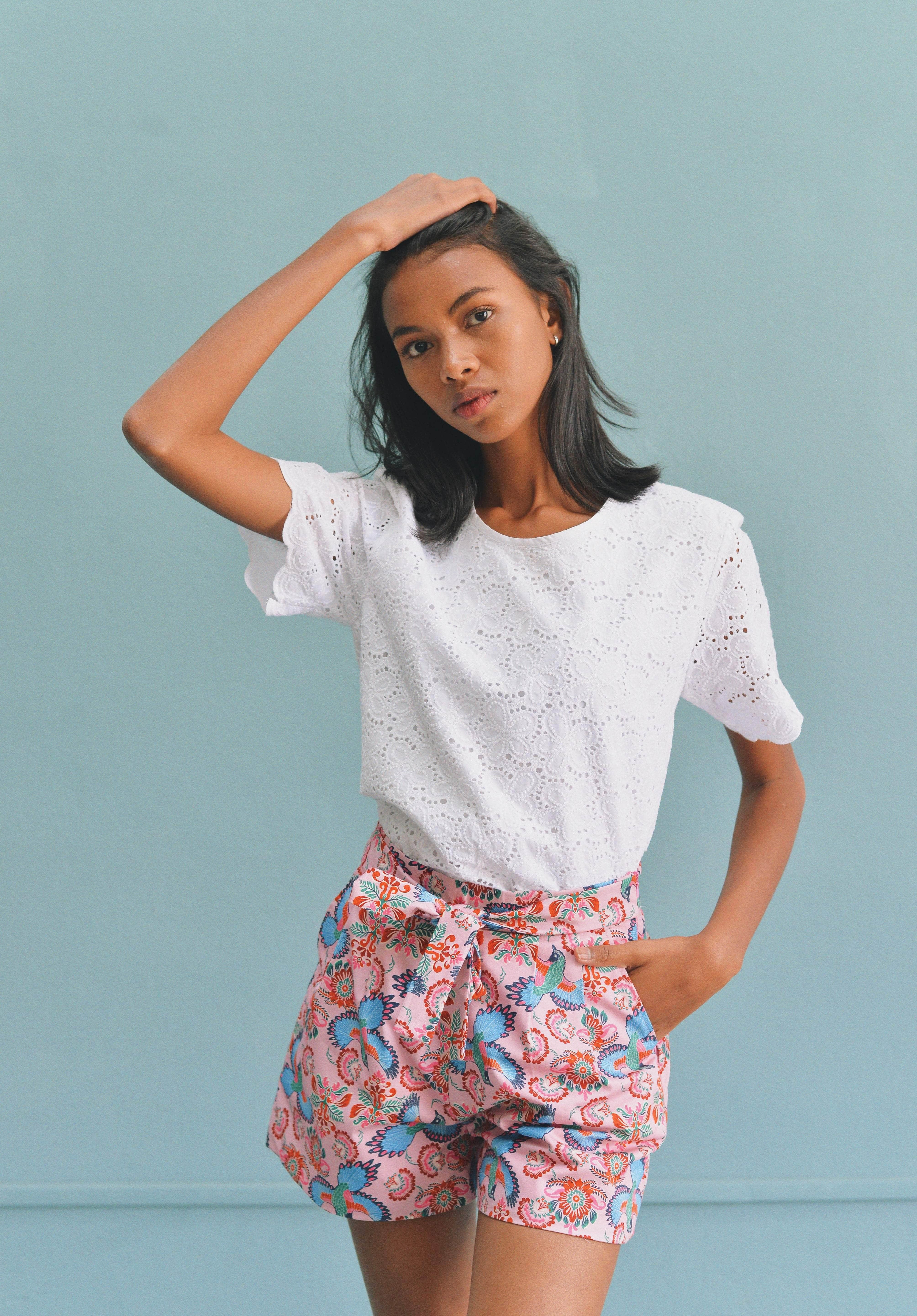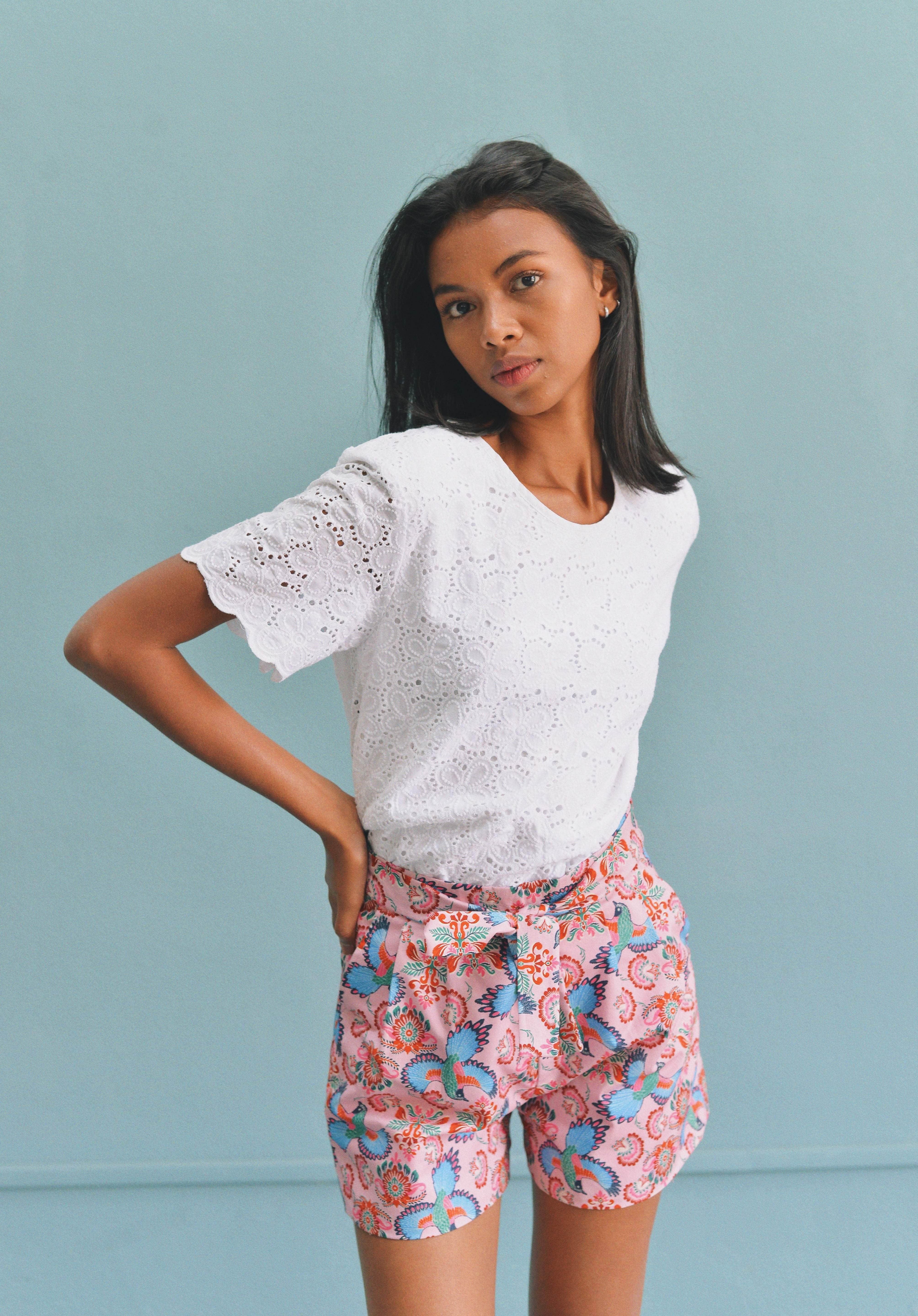 - Short rose à imprimé fleuri oiseau